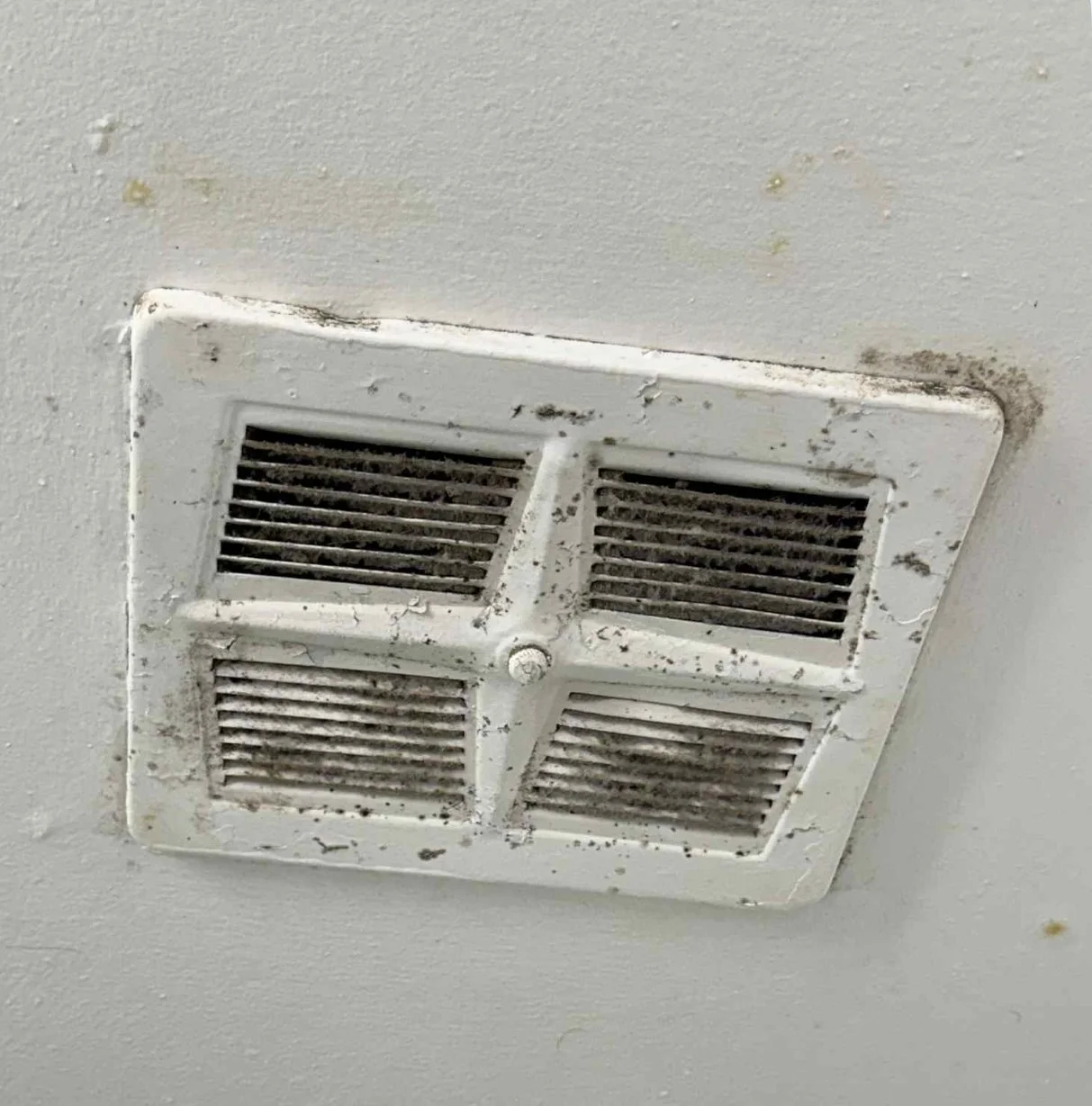 The proposed approach was to replace only the motor of a 50-year-old bathroom fan. I declined on health grounds (Thiboldeaux, 2007), as visible growth and elevated spores had been documented adjacent to the fan, and disturbing those materials without a remediation plan could worsen conditions (EPA, 2025; RPF Environmental 2022; U.S. Army 2019).
